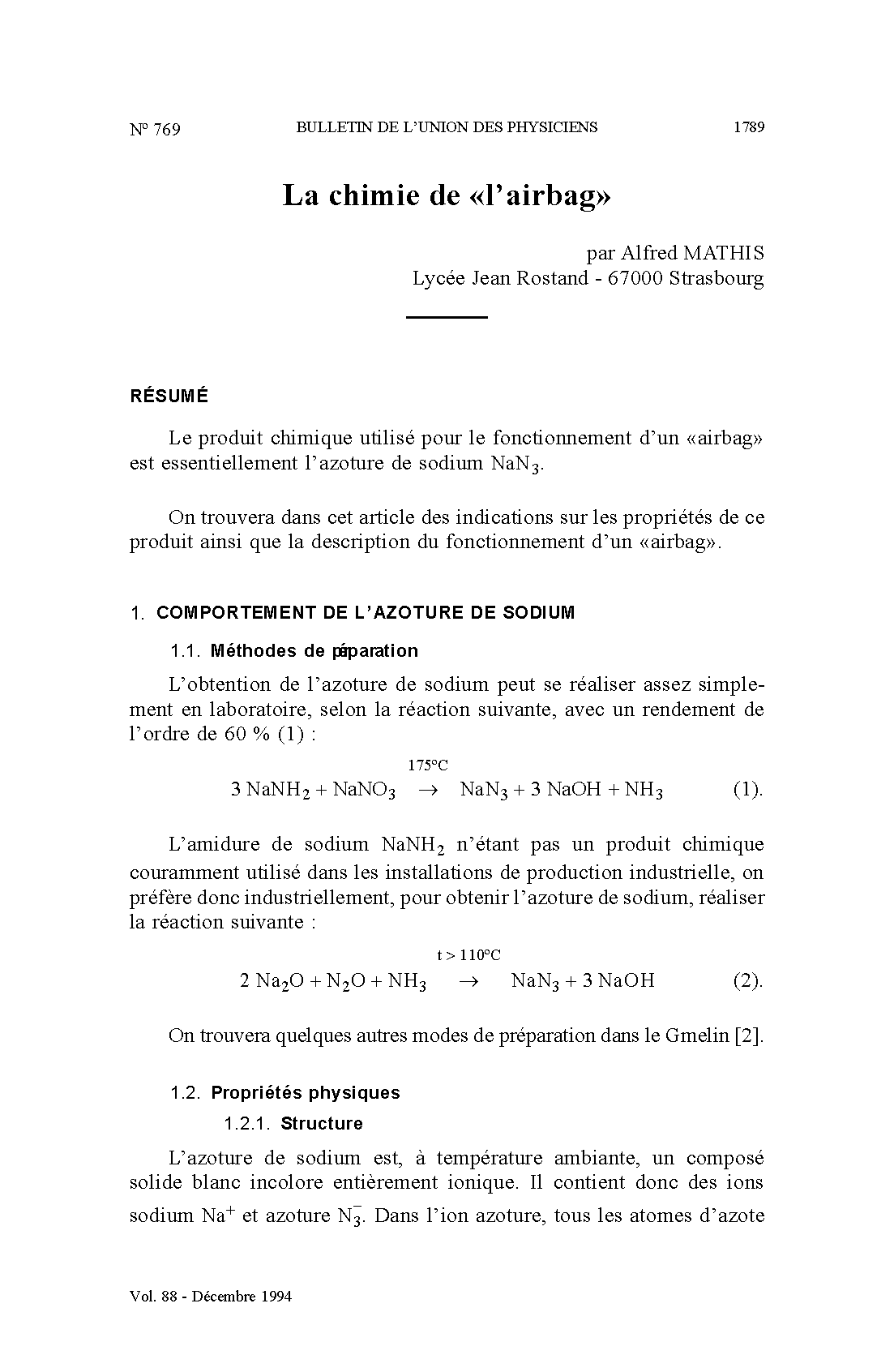 azoture de sodium, azote, effet mésomère, azotures de métaux lourds, produit toxique, sécurité, airbag