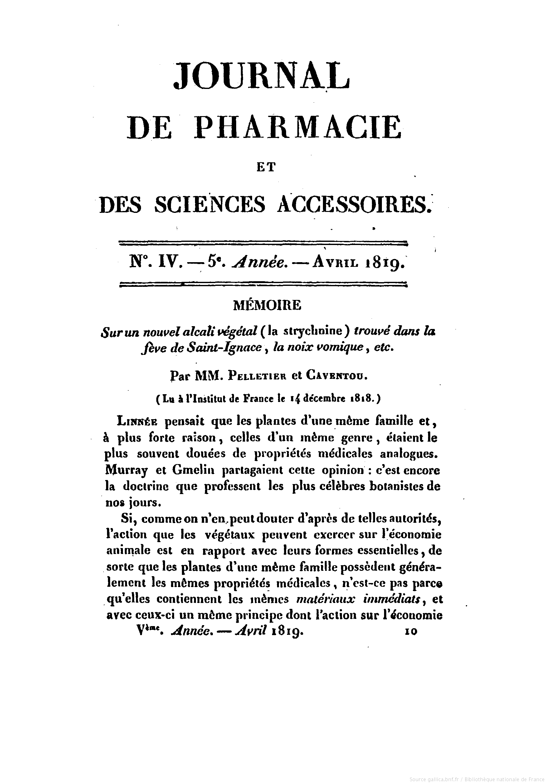 strychnine, quinine, arsenic, toxicologie, Caventou, Pelletier, école de pharmacie