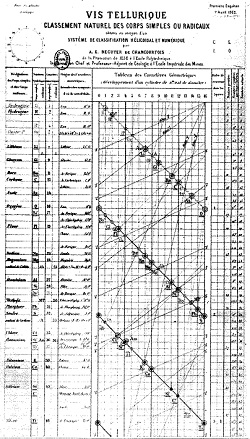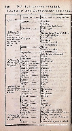 La deuxième découverte, moins spectaculaire, résulte d’analyses précises de minerais. Au début du 19e siècle une cinquantaine d'éléments chimiques sont déjà connus, mais une classification systématique fait grand défaut. Des grands groupes ou des similitudes entre des classes de substances étaient remarqués. Citons la table des affinités d’Étienne-François Geoffroy (1672-1731) de 1718, reprise et augmentée par Pierre Macquer (1718-1784) dans ses « Elemens de Chymie Théorique » en 1766, puis Antoine Laurent de Lavoisier (1743-1794), qui aboutit au livre de John Dalton (1766-1844) « A New System Of Chemical Philosophy » de 1808, où l’on trouve des poids encore approximatifs faute d’instruments précis de mesure. Par ailleurs, Goethe publie ses « Affinités électives » en 1809, transposant des réactions chimiques aux personnages de son roman.